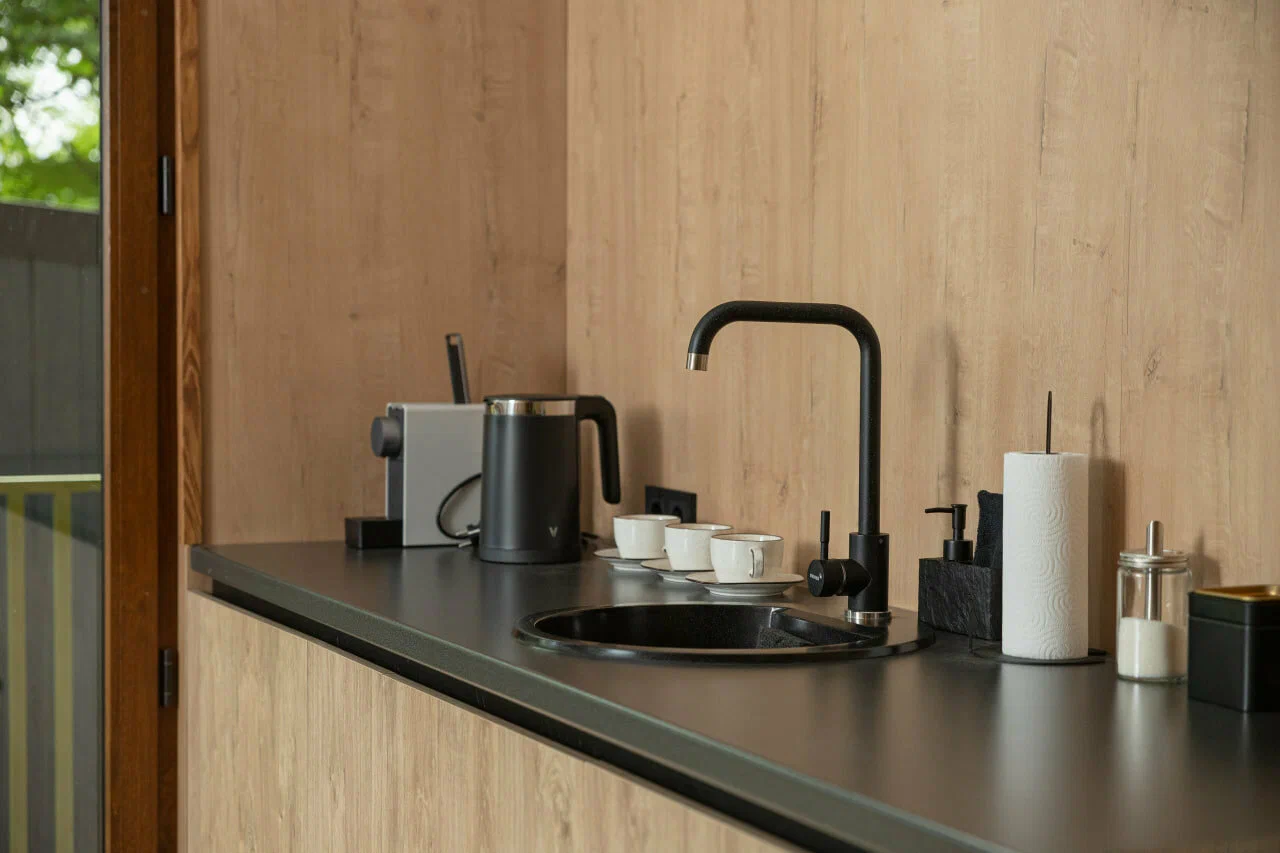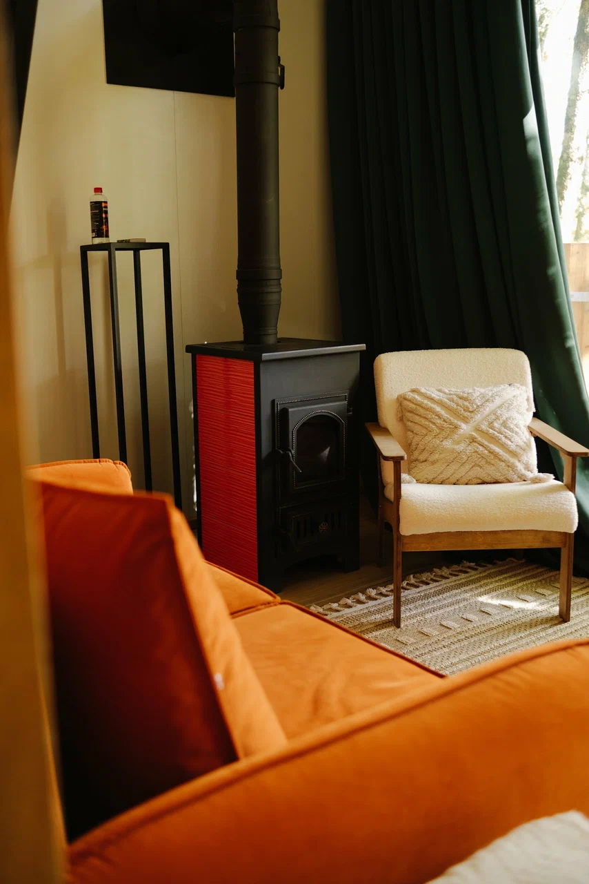 На территории глэмпинга построено 8 просторных домов площадью 40 м2, а также 10 уютных номеров по 25 м2.